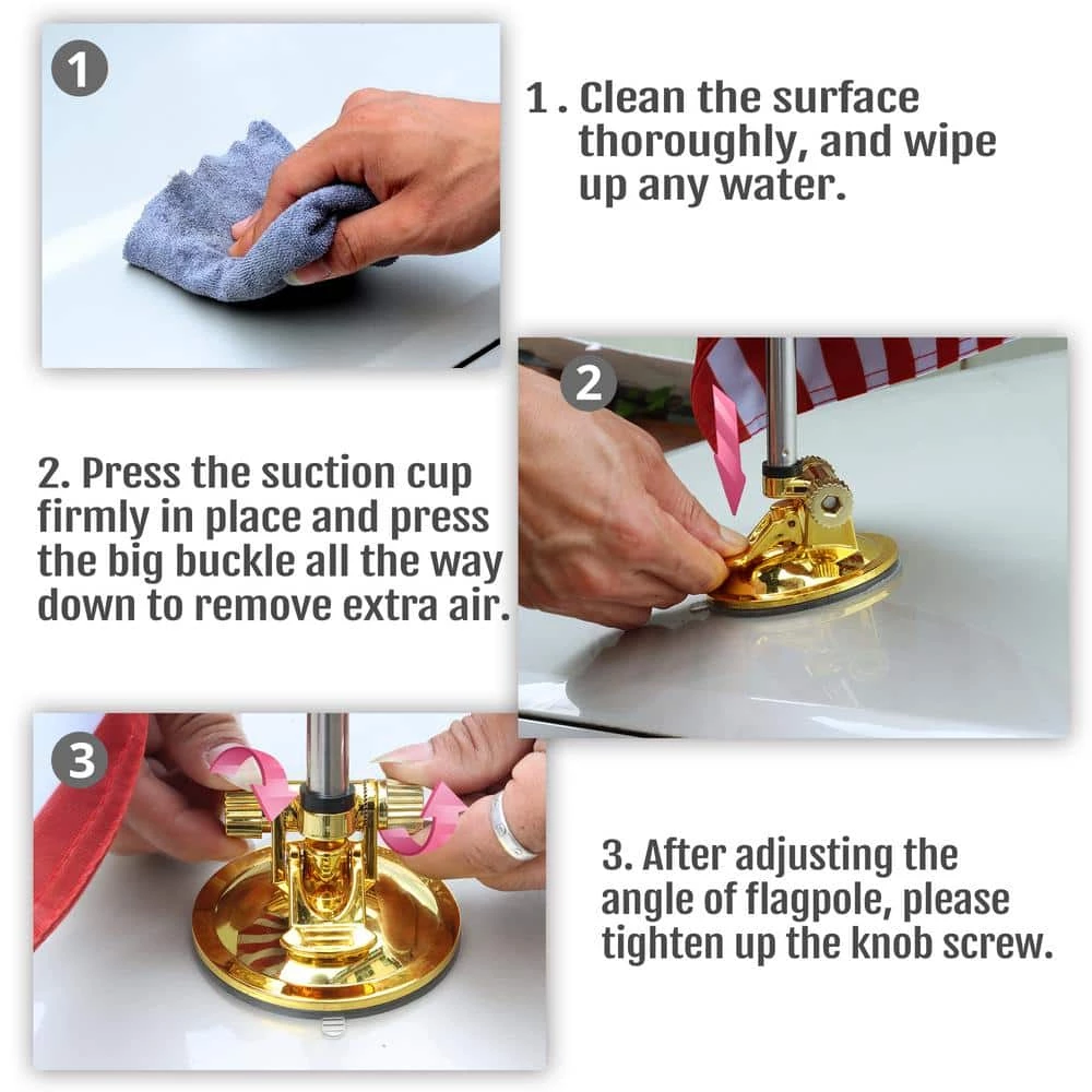 - Suction style – the upper class flag holder can be mounted to the most area of your car, truck, boat or other vehicles and instantly give it a nice suction style