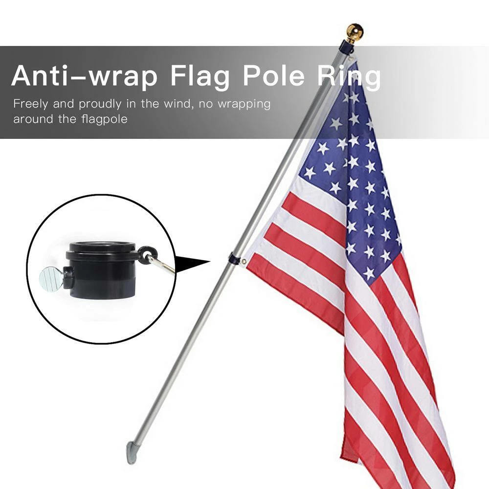 - TANGLE FREE FEATURE – Rings have a rotating anti-wrap feature that allows the flag to move freely from the pole. It prevents your flag from tangling up and protects it from tears.