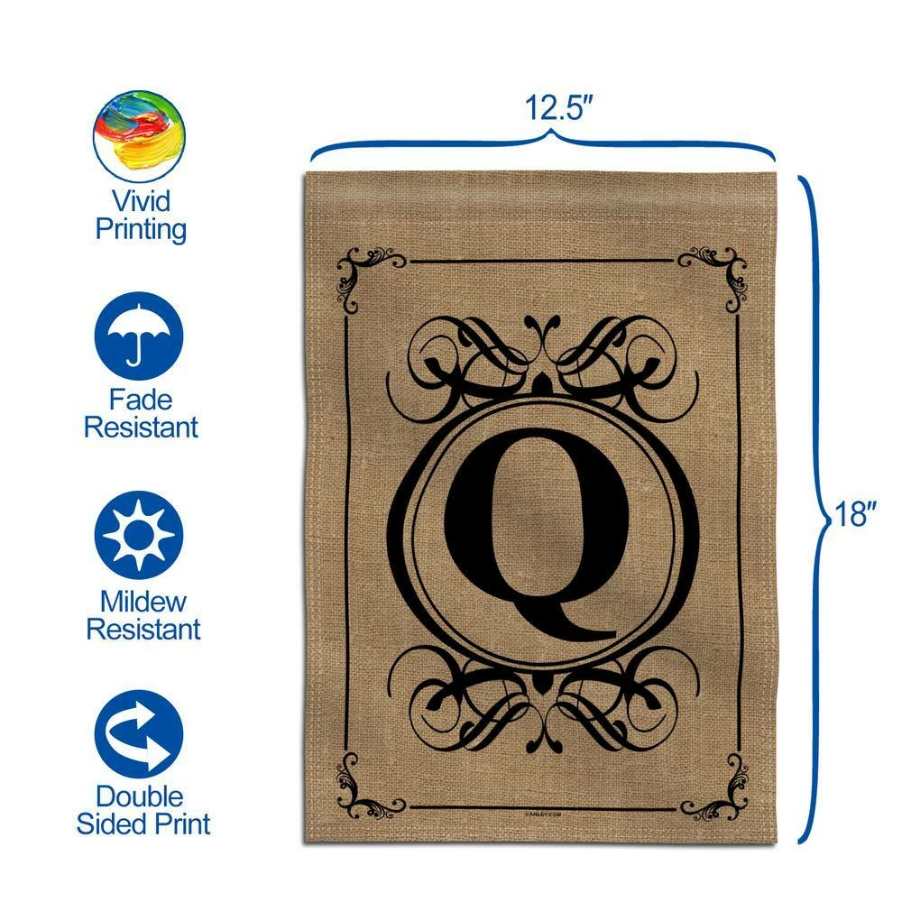 - Specifications – made of 100% polyester package contains one 18 in. x 12.5 in. ANLEY monogram letter Q garden flag, with 1.5 in. W sleeve flag pole not included