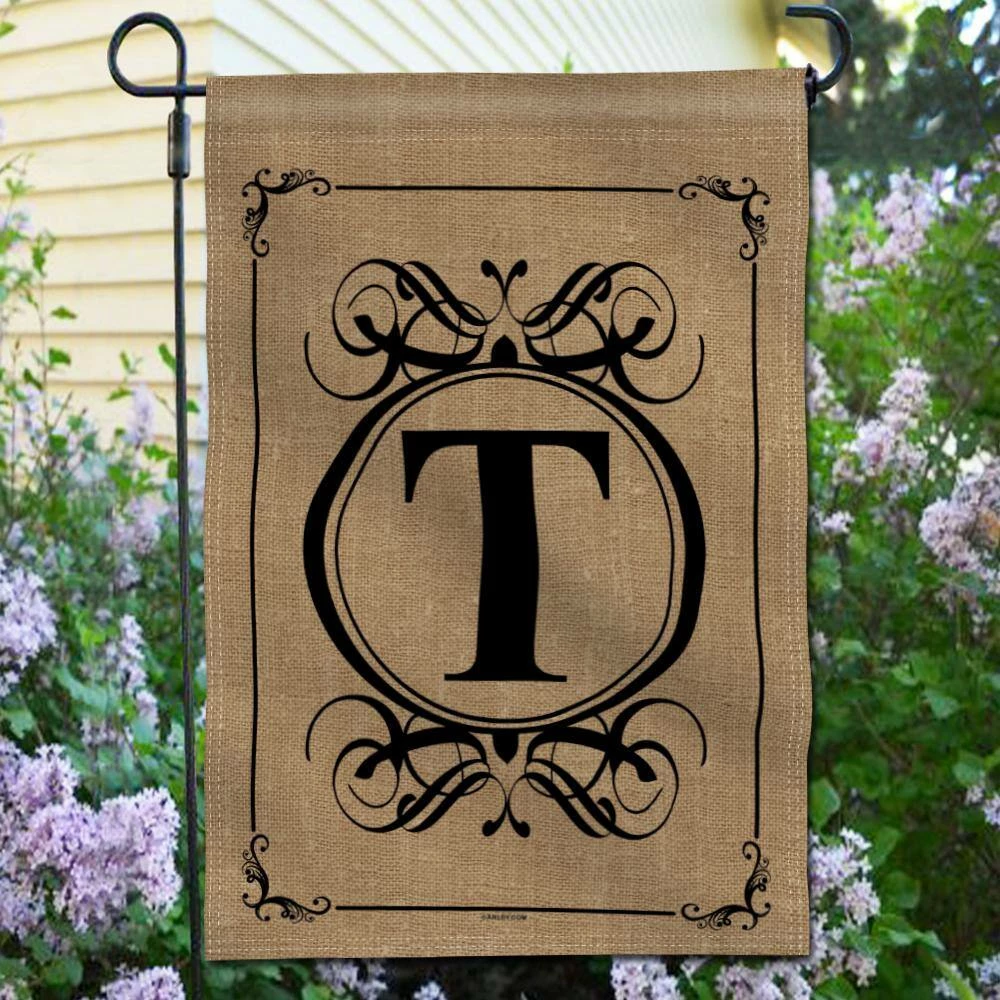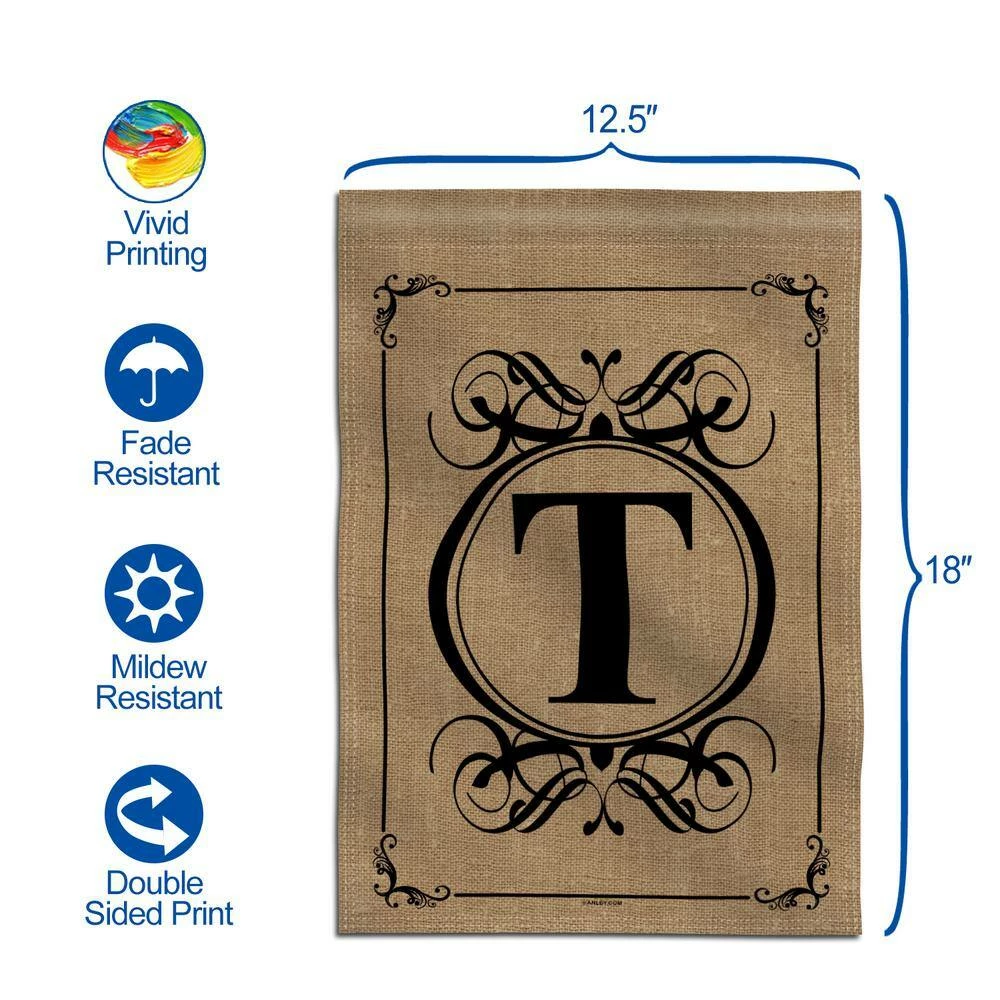 ANLEY Classic Monogram Letter T Garden Flag. Double Sided Family Last Name Initial Yard Flags. Personalized Welcome Home Decor – Weather Resistant and Double Stitched – 18 in. x 12.5 in.