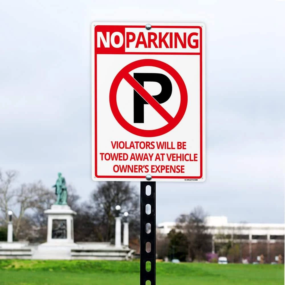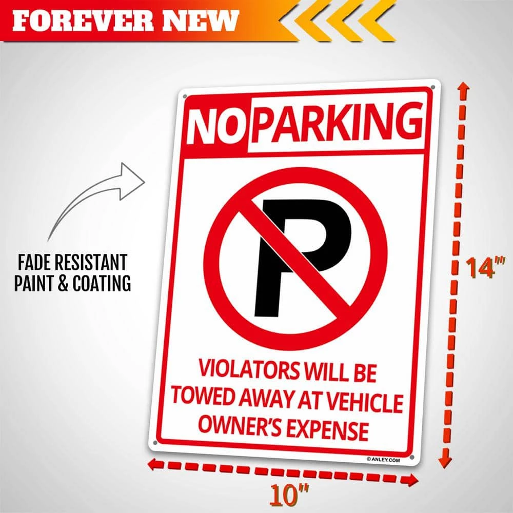 Bright and vibrant red lettering design , a nice and polite way to remind people not to park in the wrong place. Sign is made from 100% rust-free 40 Mil strong aluminum. Sign is 10 in. x 14 in. Come with 4 pre-drilled holes.