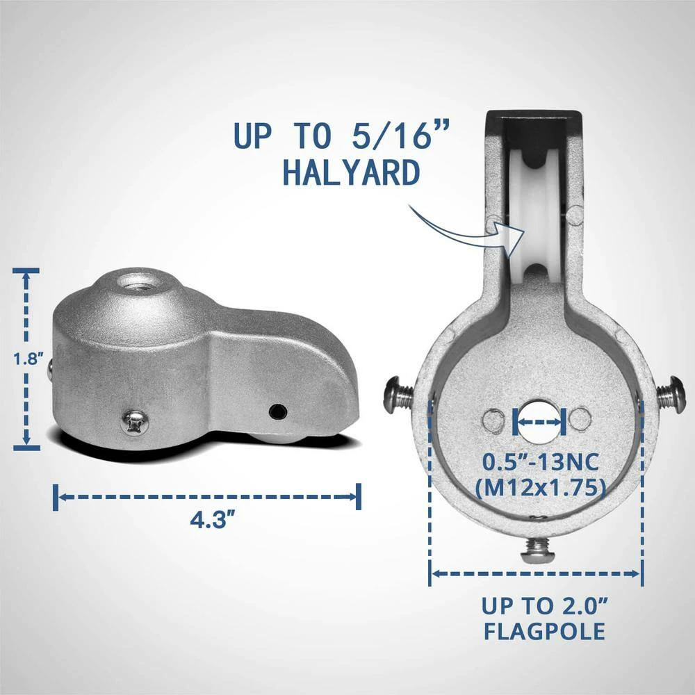 - FIT ALL STANDARD FLAGPOLES – Truck is secured to pole with 3 stainless inset screws. Designed to mount any flagpole that diameter ranges from 1.5″ to 2″.