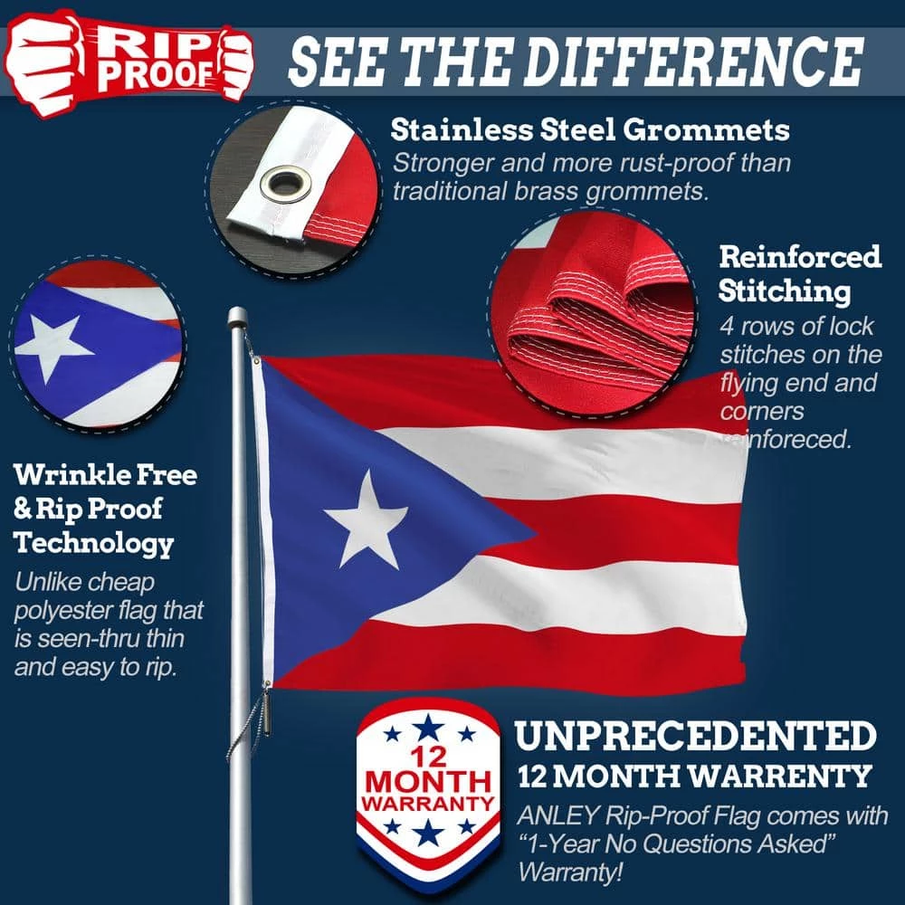 - 100% blackout – the ANLEY Rip-Proof technology flag weights 13.5 oz., featuring total blackout, no see-thru, and therefore the more vivid and bright color, perfectly showcasing Ol’ glory for all to see