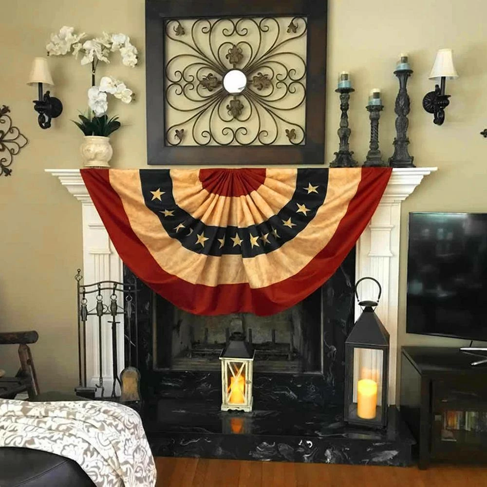 ANLEY Vintage Style USA Pleated Fan Flag, 3 ft. x 6 ft. American US Bunting Flags Patriotic Stars and Stripes. Sharp Color Fade Resistant Canvas Header and Brass Grommets. United States 3 ft. x 6 ft. Fan Banner. (Pack of 2).