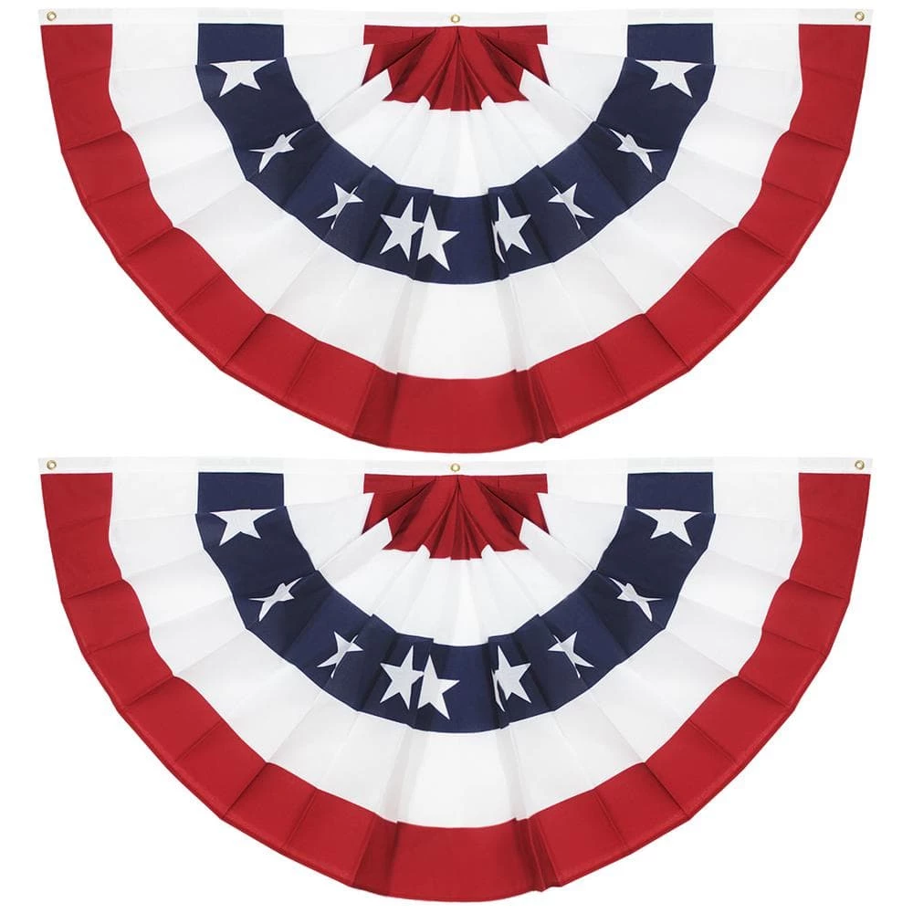 ANLEY USA Pleated Fan Flag. 3 ft. x 6 ft. American US Bunting Flags Patriotic Stars and Stripes. Sharp Color and Fade Resistant – United States 3 ft. x 6 ft. Half Fan Banner (2-Pack).
