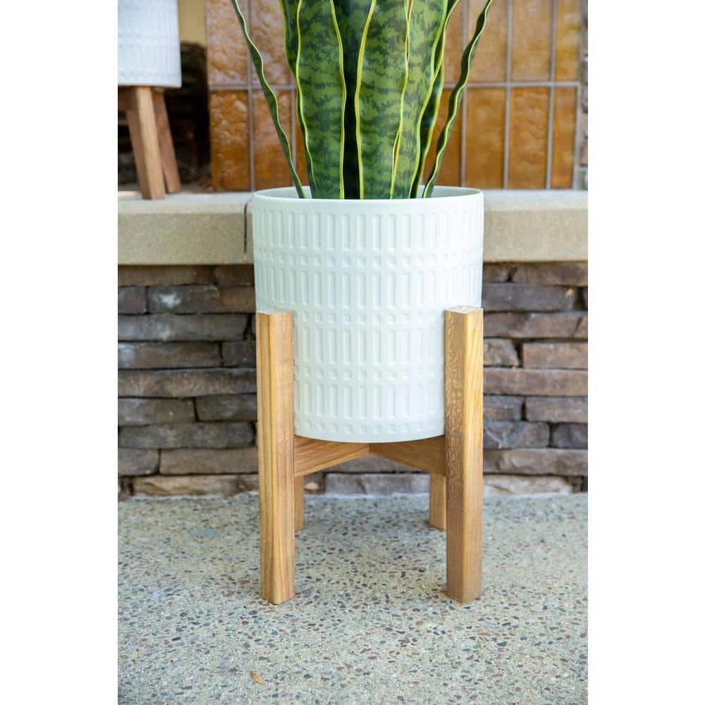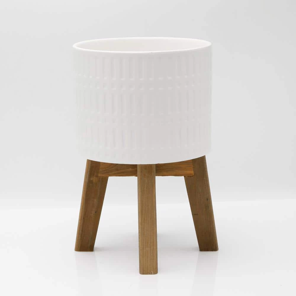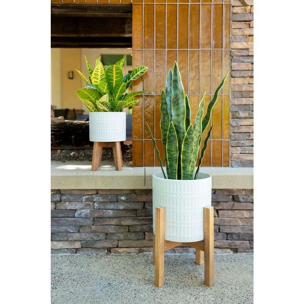 Adorn your space with this Set of 2 Roman Ceramic Planters on Wood stand. Hand-crafted by Artisans, our ceramic planter on wood stand will help upgrade your plant game in style. Made of ceramic and painted matte white, these planters will add a bit of chic nature to your living space. This unique set will help you start your own little Garden indoors. (Hand-crafted by Artisans, Material: Ceramic, wood. Size: 10 in. x 10 in. x 22.5 in. Inter: 9.2 in. x 9.2 in. x 9.3 in./7.25 in. x 7.25 in. x 5.5 in. Capacity: 317.46 oz./176.4 oz.). No drainage hole, for Indoor use only.