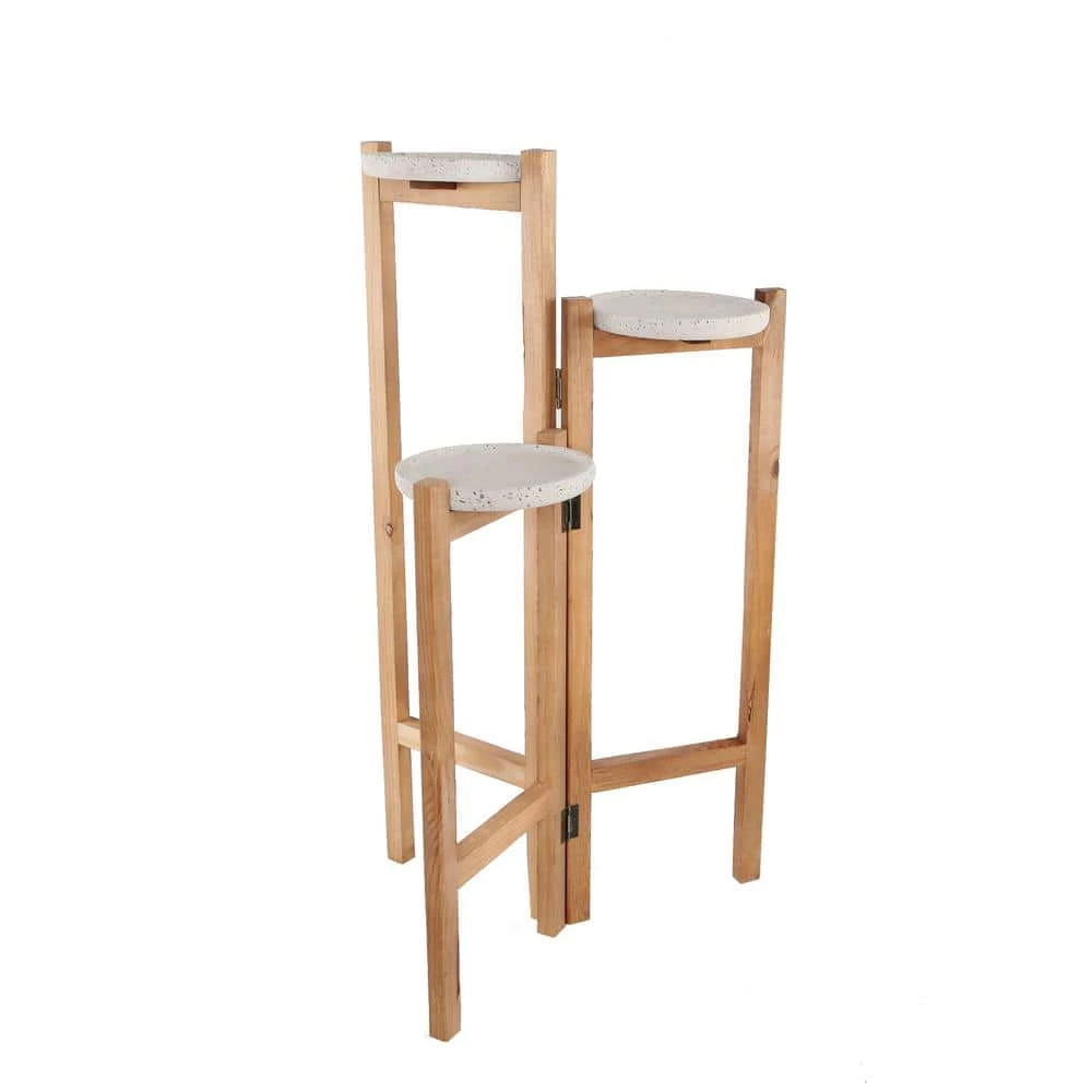 30 in. H Terrazzo Wood 3-tired Planter Stand Lovely Decor indoor planter Stands. Measurement(inch): 18.3 in. x 10 in. x 30 in. Material: Wood, Cement. Color: No drainage hole, for Indoor use only.