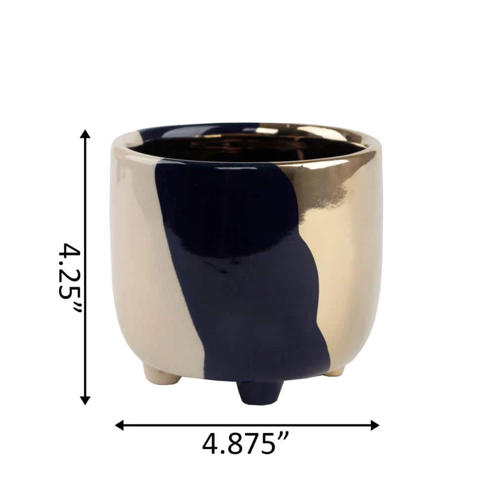 Decorate your home or office in Mid Century Modern style with our charming 3-Tone Footed Ceramic planters. Hand-crafted by Artisans using superior ceramic material, these 3-tone planters give a clean and chic feel to any tabletop, entry way or window sill. Made of Ceramic and painted Blush Pink, Gold and Cream, this 4.875 in. x 4.875 in. x 4.25 in. indoor planter will add a bit of charm to your living space. Buy a few at a time, so you can start your own little Indoor Garden. Both Adults and Children go Wild for these adorable and fun 3-tone planters. (Hand-crafted by Artisans; Material: Ceramic. Size: 4.875 in. x 4.875 in. x 4.25 in.; Color: Blush Pink, Gold, Cream.) No drainage hole, for Indoor use only.