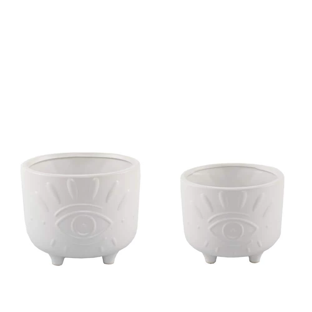 Lovely Decor indoor planters. Measurement(inch): 6.5 in. x 6.5 in. x 4.5 in. x 4.5 in. x 4.5 in. x 4.5. Intersize(inch): 5.5 in. x 5.5 in. x 4.125 4.25 in. x 4.25 in. x 3.5. Capacity(oz):52.9/28.2. Material: Ceramic. Color: Matte White. No drainage hole, for Indoor use only.