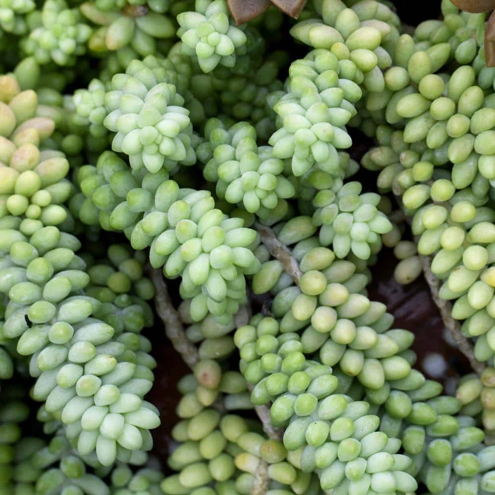 Sedum morganianum ‘Burrito’ is a beautiful trailing succulent and the perfect addition to your indoor landscape. Like most succulents, it displays the ideal characteristics one looks for in a houseplant – it’s easy to care for and it’s hard to kill. Bearing thick stems covered with plump, blue-green leaves, ‘Burrito’ is a showstopper planted in a hanging basket where its long, luxurious stems can drape over the side.