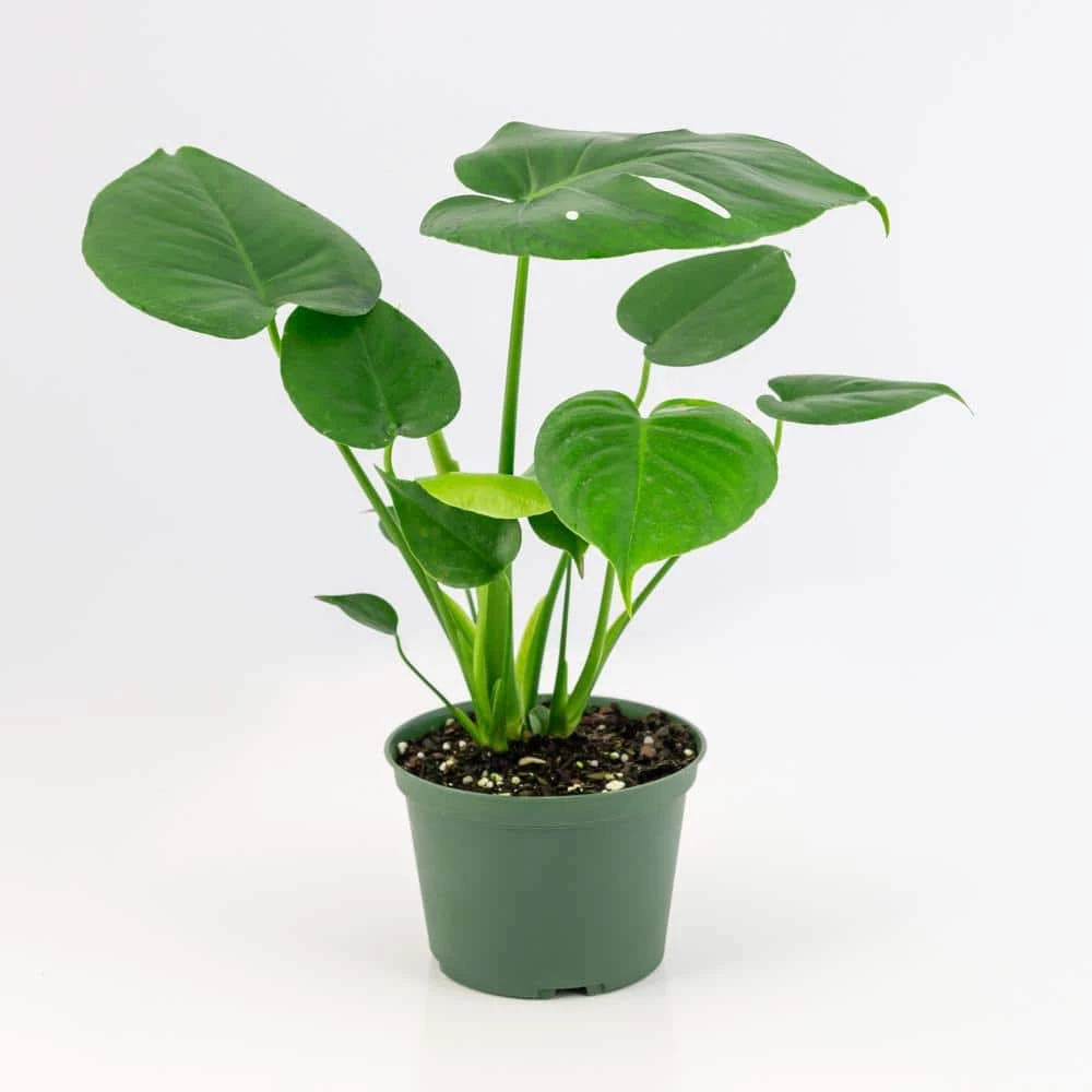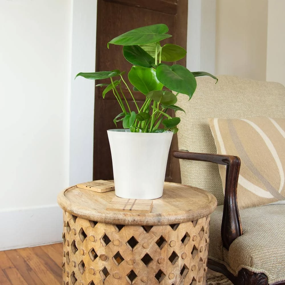 If you’re looking to create a big, bold, tropical feel, Monstera may be the perfect houseplant for you! Also known as the “Swiss Cheese Plant”, it features big (2-foot-wide) leaves that are cut down the sides and look like they have holes in them. This easy to grow houseplant gets huge, lives for many years, and looks great with all types of interior styles.