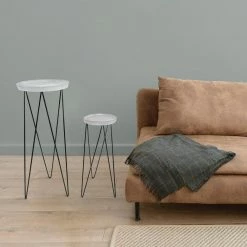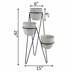 Flora Bunda 10 in. and 8 in. Ivory/Glazed Mayan Ceramic on Metal Plant Stand (Set of 2)