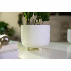 Flora Bunda 6 in. and 4.75 in. Matte White Evil Eye Ceramic Plant Pot with Legs (Set of 2)