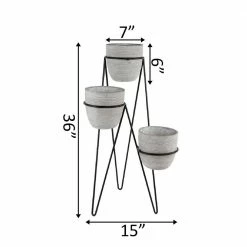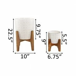 Flora Bunda 5 in. Matte White Arrow Ceramic Plant Pot on Wood Stand Mid-Century Planter